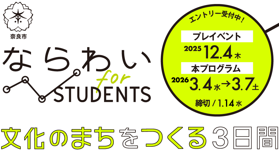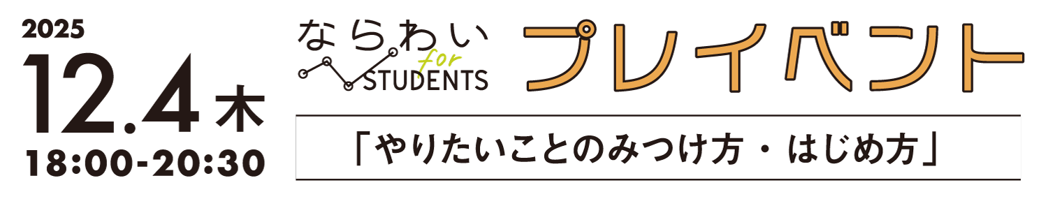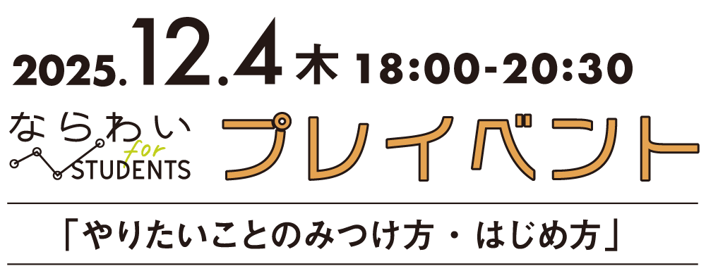 ならわい for students 〜文化のまちをつくる3日間〜 の開催に際して、プレイベント「やりたいことの見つけ方・はじめ方」を開催します。